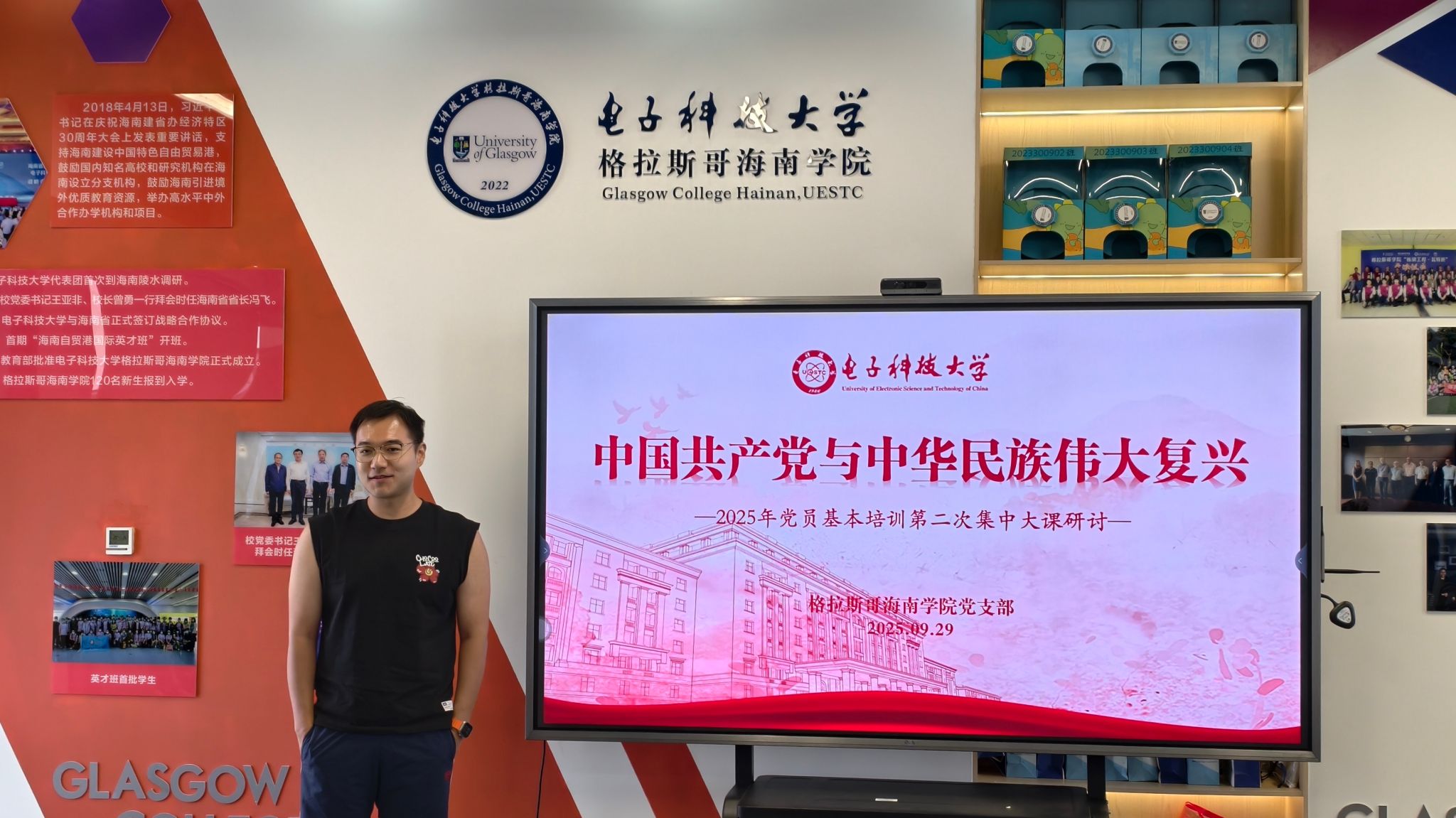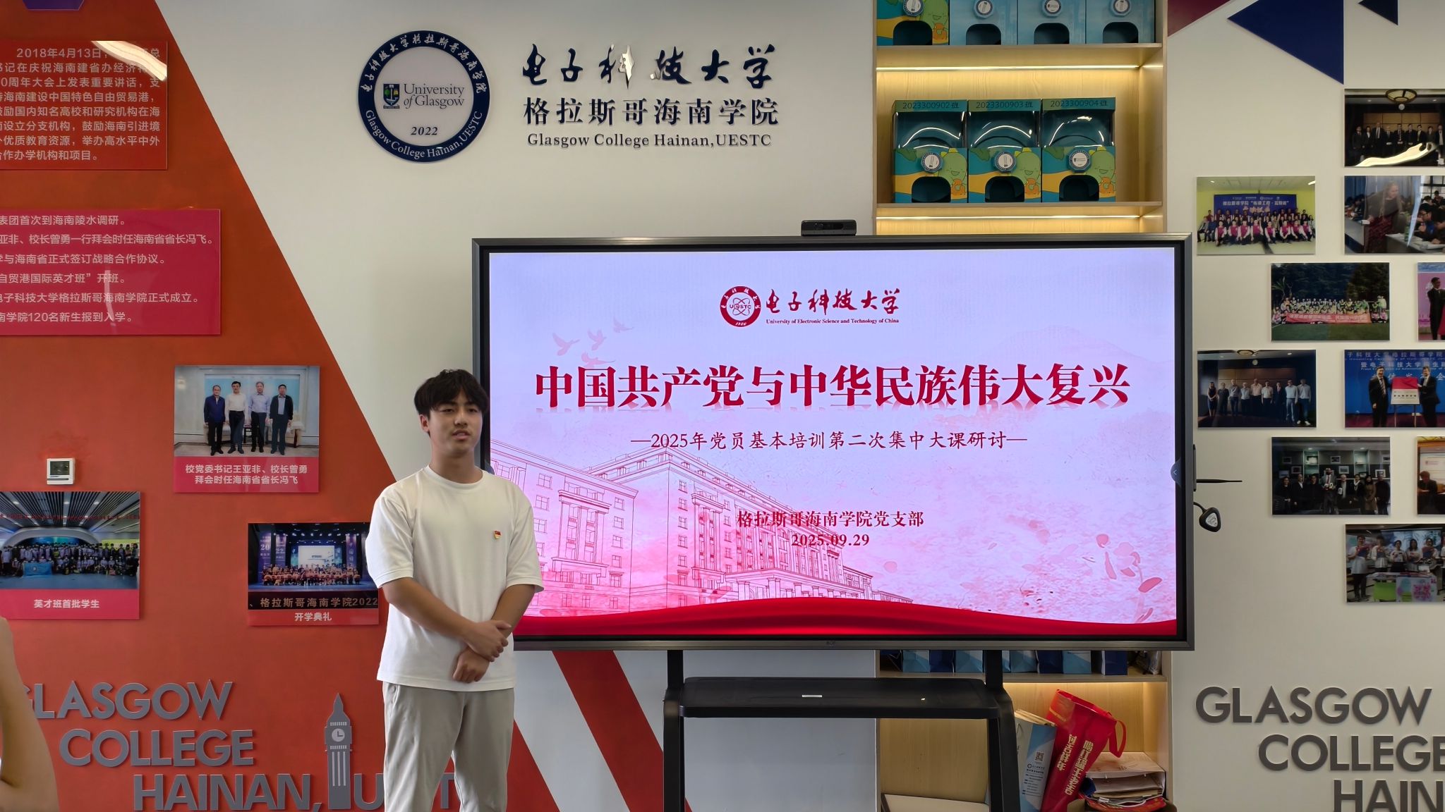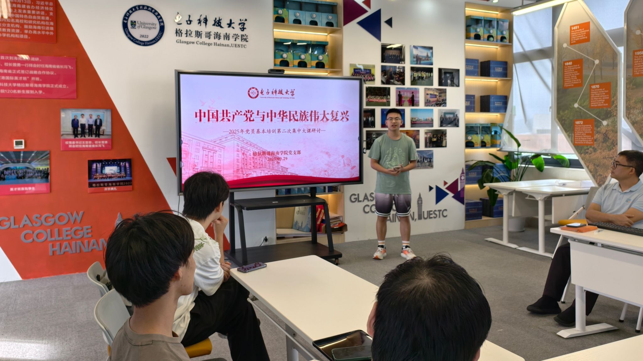 9月29日,格拉斯哥海南学院党支部开展2025年党员基本培训第二次集中大课研讨,学院党支部师生党员同志结合集中学习中央党校(国家行政学院)谢春涛教授讲授的《中国共产党与中华民族伟大复兴》专题报告内容逐一进行发言,学院党委副书记兼副院长王迎化主持本次培训研讨。