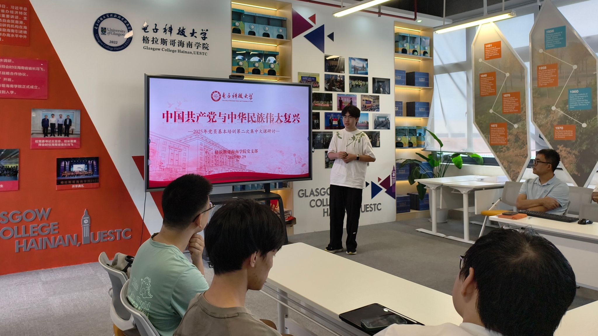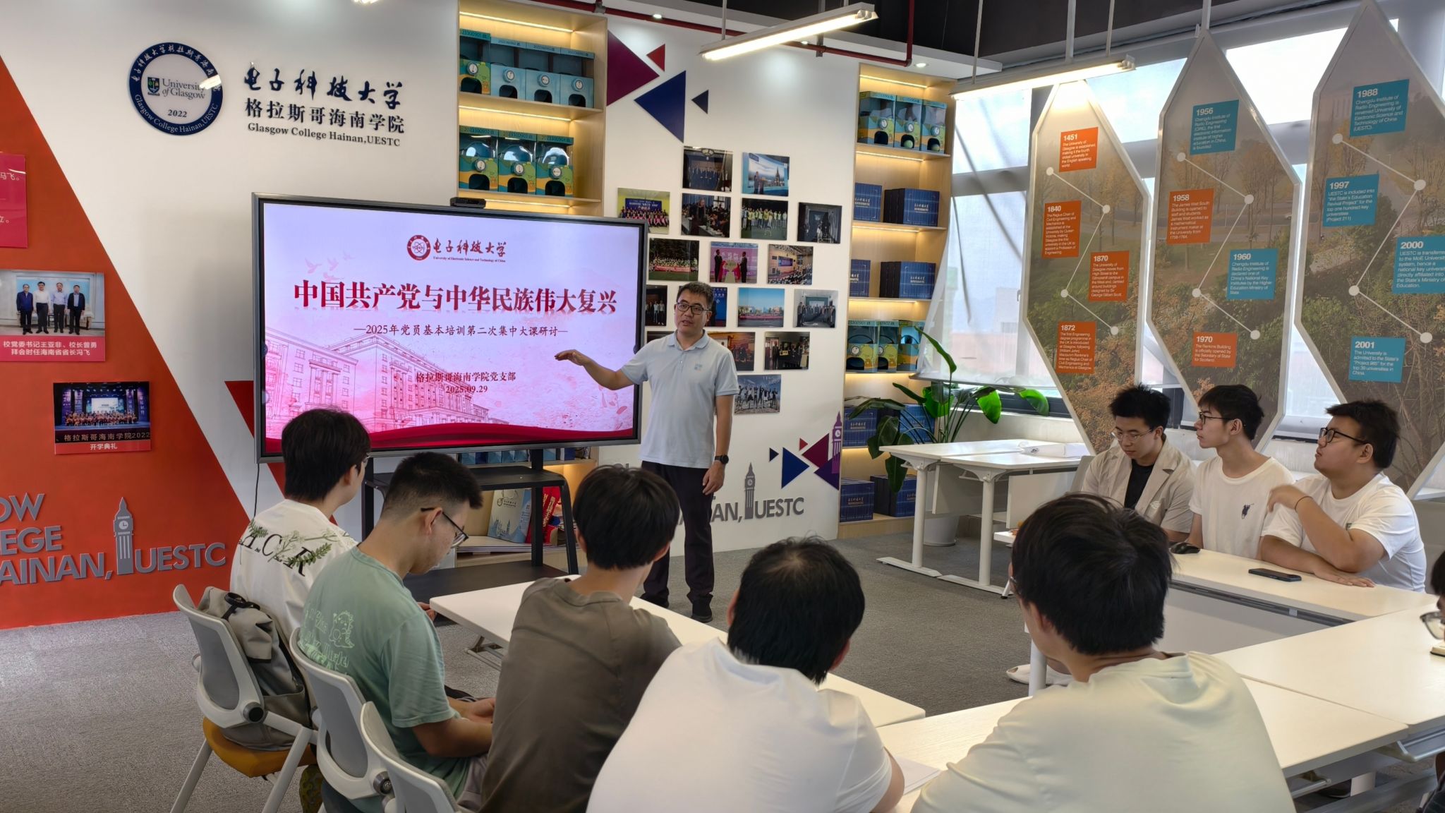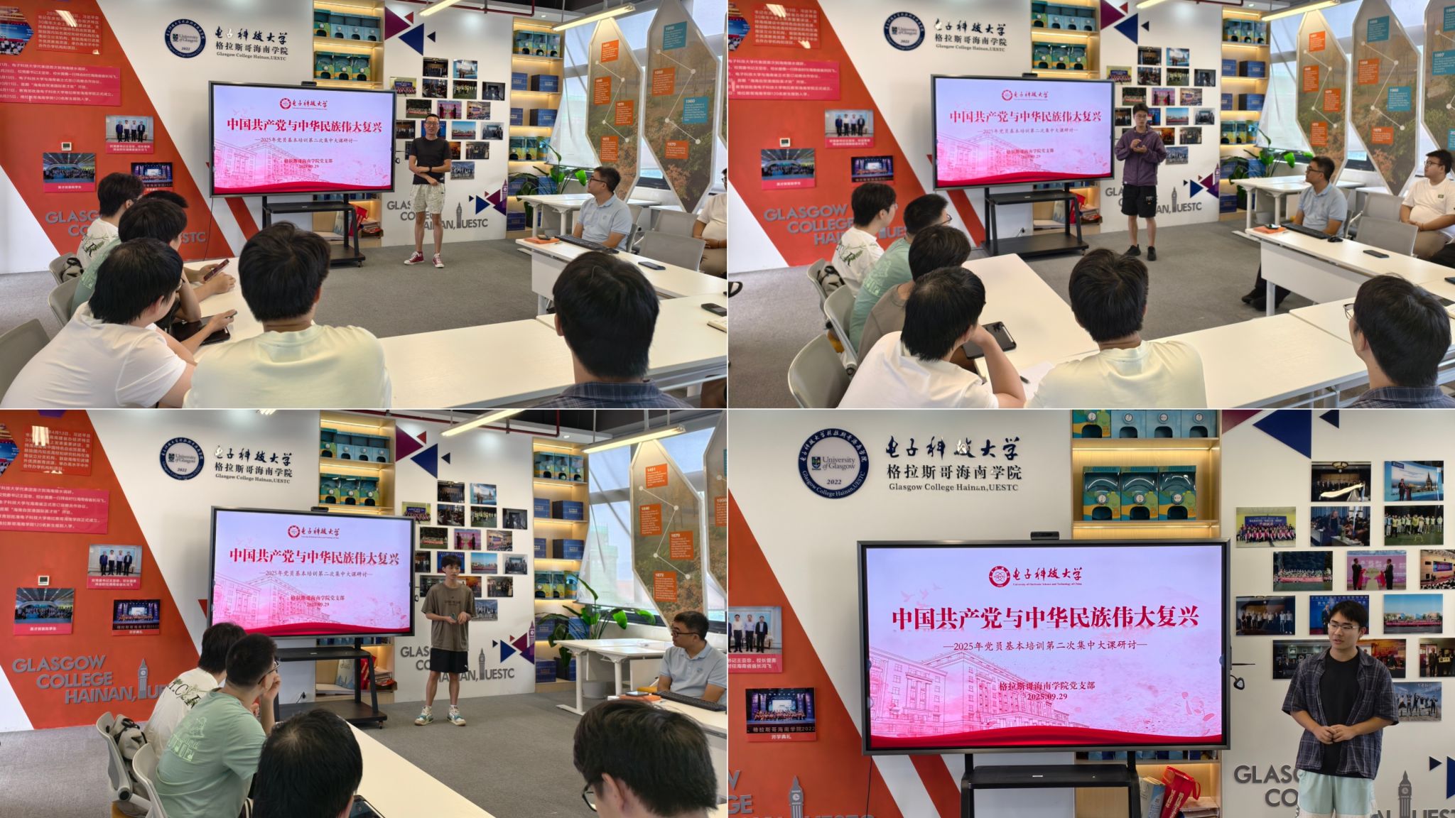 9月29日,格拉斯哥海南学院党支部开展2025年党员基本培训第二次集中大课研讨,学院党支部师生党员同志结合集中学习中央党校(国家行政学院)谢春涛教授讲授的《中国共产党与中华民族伟大复兴》专题报告内容逐一进行发言,学院党委副书记兼副院长王迎化主持本次培训研讨。