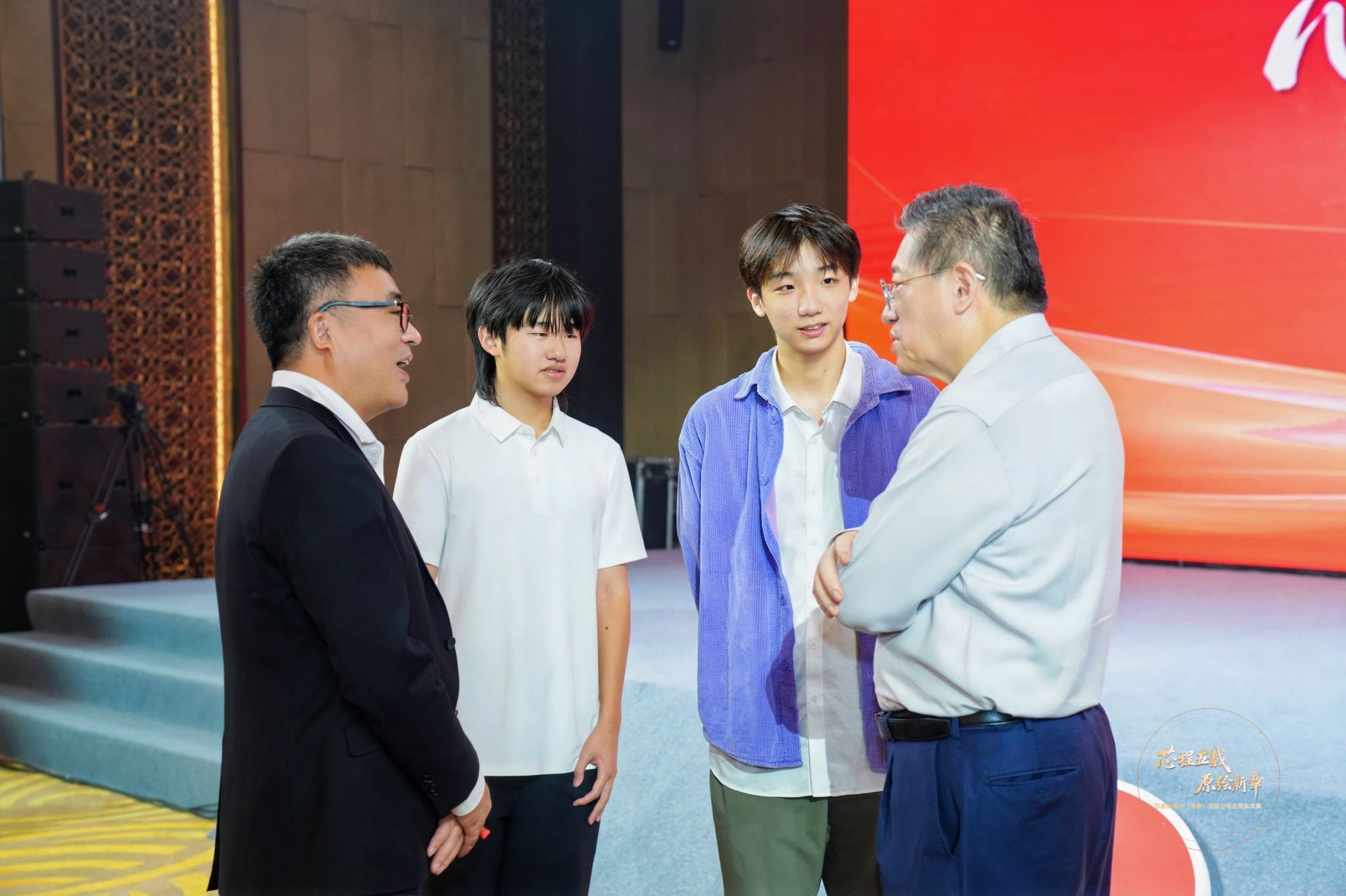 交流期间,师生代表还应邀参加芯原微电子(海南)有限公司五周年庆典活动,聆听公司创始人,董事长戴伟民博士专题报告,了解企业发展历程、公司海南战略布局以及世界芯片产业发展前景。会后,企业创始人与同学亲切交流,合影留念。