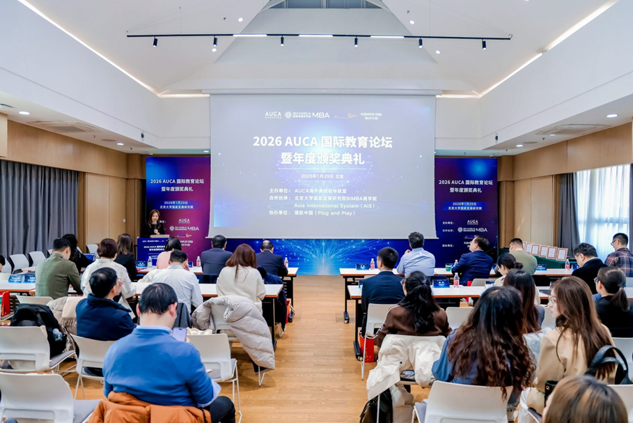 本次论坛由 AUCA 海外高校驻华联盟主办,北京大学国家发展研究院 BiMBA 商学院、Asia International System(AIS)联合合作,璞跃中国(Plug and Play)协办,聚焦人工智能时代国际教育合作新趋势与人才培养创新路径。论坛期间,行业专家学者围绕 AI 技术对教育行业的影响、校企协同育人模式创新等关键内容分享洞见,为国际教育合作实践提供了多元思路。