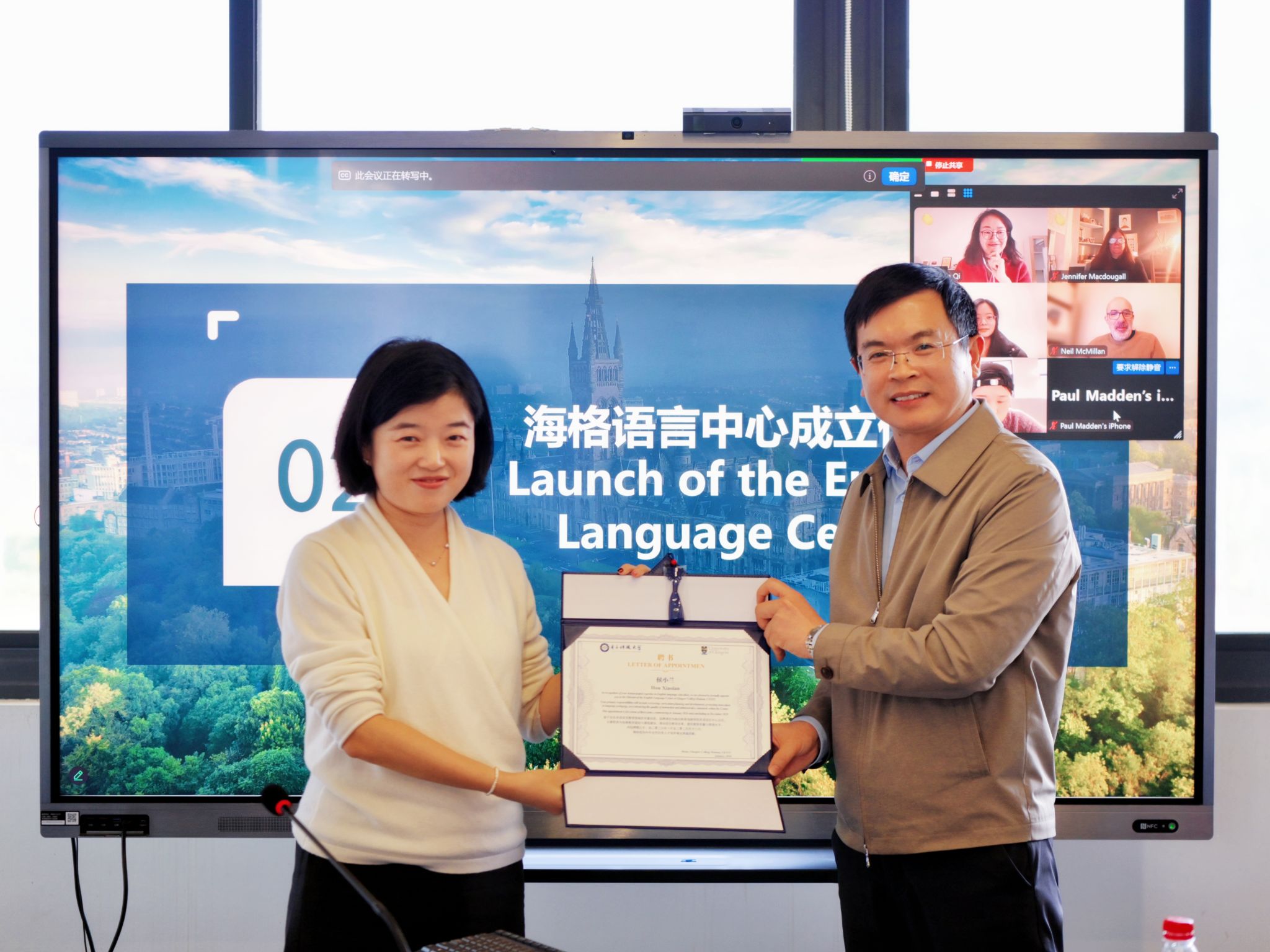 为进一步提升英语教学质量,完善人才培养支撑体系,推动学院国际化办学高质量发展,1月14日学院举行英语语言中心成立仪式。学院领导、语言中心管理团队、全体英语教师、格拉斯哥学院英语教师代表及相关科室代表参加会议。